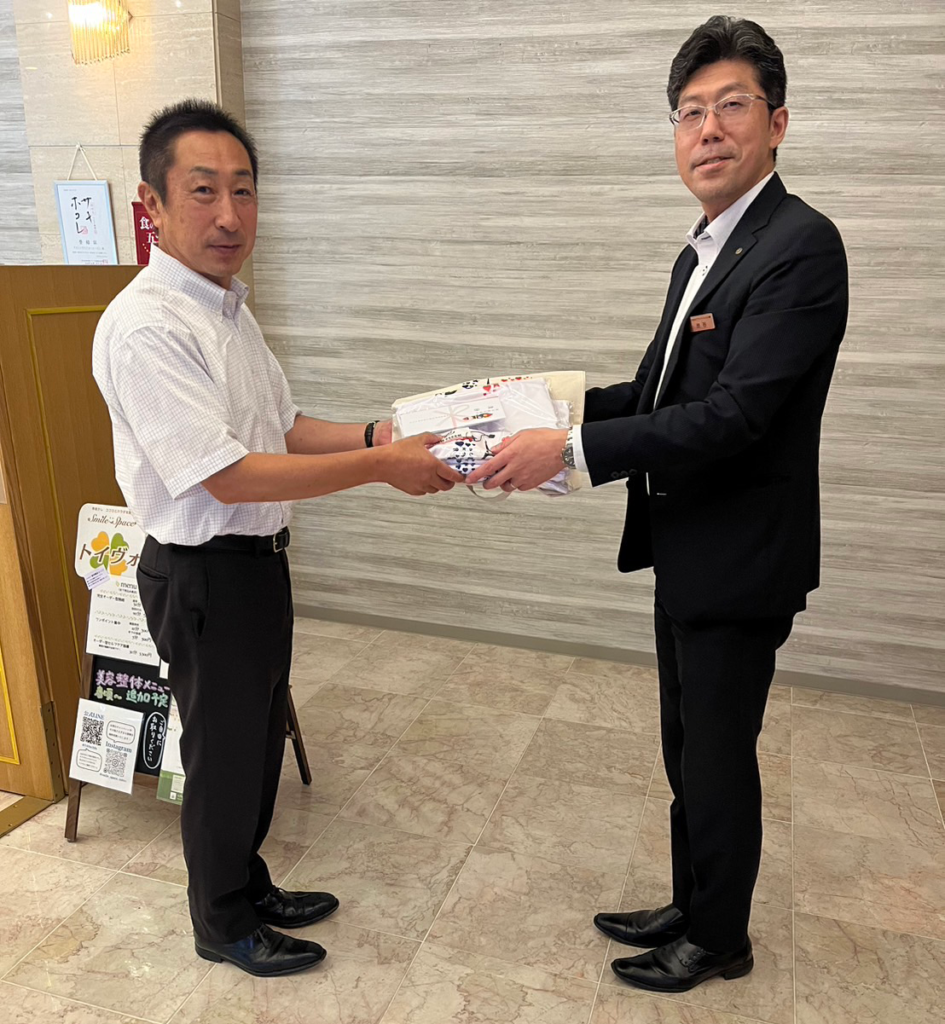 OB会から鈴木優花選手に激励費を贈呈いたしました。現在海外で調整中のため優花選手のお父様に応援Tシャツとともにお渡しいたしました。